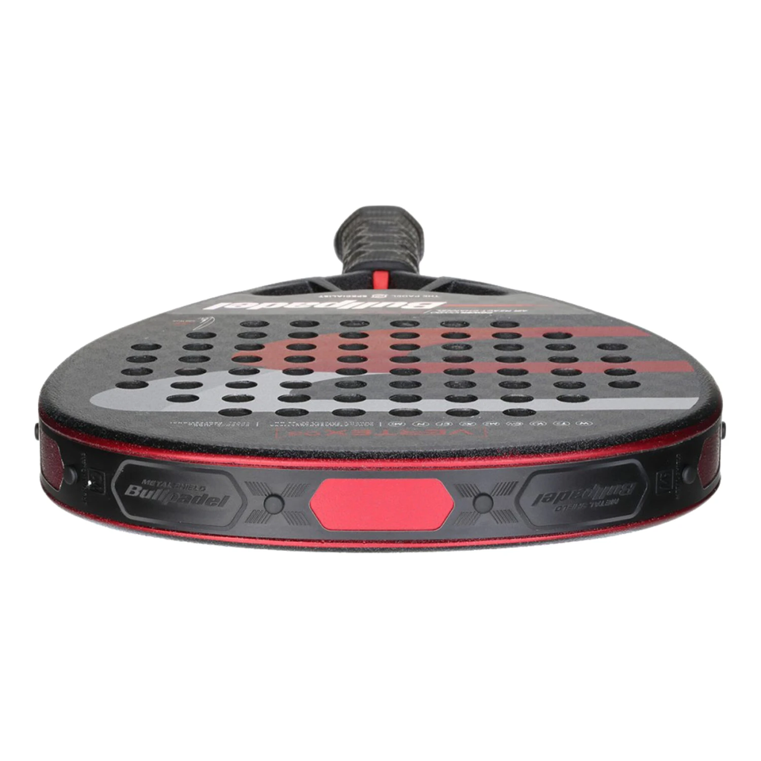 The Vertex03 is a diamond-shaped racket with maximum power that develops high performance with a rough Topspin surface for a better ball spin. The Vertex03 is a diamond-shaped with maximum power high performance raket with a “Topspin” rough for better ball spin. It is made up of 12K carbon surfaces, MultiEVA rubber inner core and 100% carbon frame. In addition, it has the Mastershield protector that adapts to the Customweight weight plate system, allowing you to modify the balance of the racket according to the needs of each player. It has the Vibradrive system for the absorption of vibrations and the Vertex heart with the Airchannel system and nerves on the side of the racket frame. In addition, it also incorporates the Hesacore grip, which reduces vibrations and the probability of injury.
